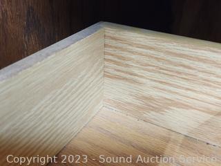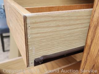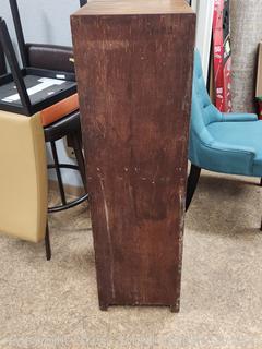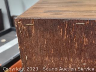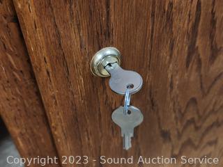 Roller drawer guides. Comes with keys. Some minor scuffs, wear to finish. 48.5" H x 14" W x 17.5" D.