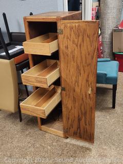 Lot #0328: Oak Locking 3-Shelf Index Card Cabinet