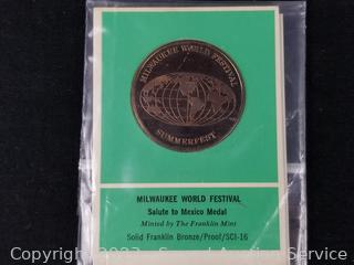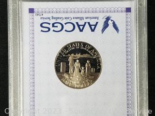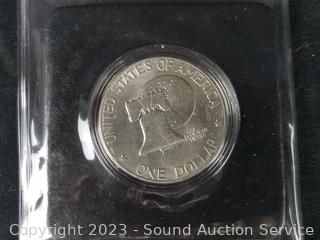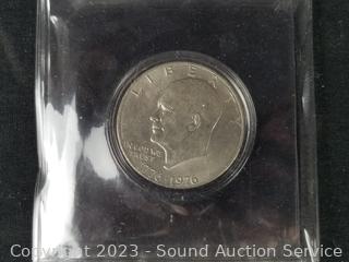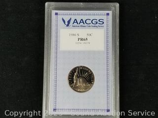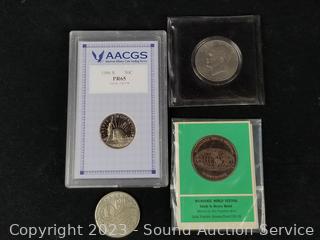 Graded 1986S Liberty Half Dollar PR65, Bicentennial 1776-1976 Eisenhower dollar, Golden Dollar $1 gaming token, Milwaukee World Festival medallion. ATTN: We are not coin or currency experts or graders, please use your own judgement when bidding.