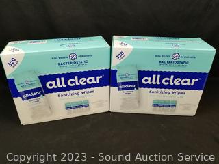 Lot #0116: (2) 320ct All Clear Household Sanitizing Wipes