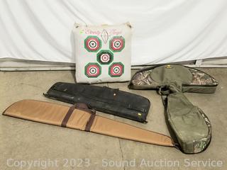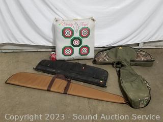 Lot #0097: 2 Soft Side Rifle Cases & 1 Crossbow Case & Bow Target