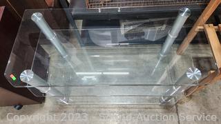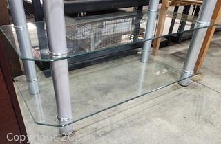 Lot #0021: 3-Tier Clear Beveled Glass Media Console