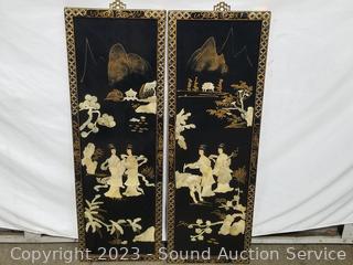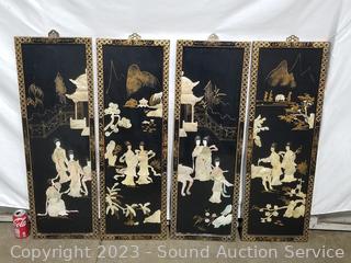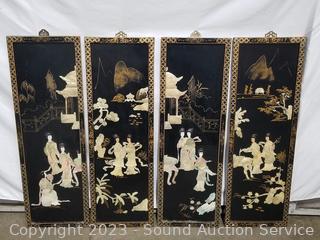 Lot #0282: 4 High Relief Carved Shell Oriental Wood Panels