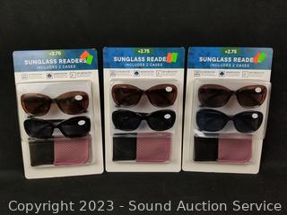 Lot #0236: 6 Pairs +2.75 Sunglass Readers w/3 Soft Cases