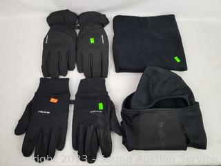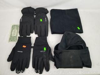 Lot #0204: Bula Balaclava, Neck Warmer & 2 Pairs Men's Gloves