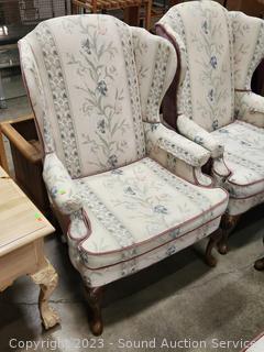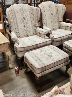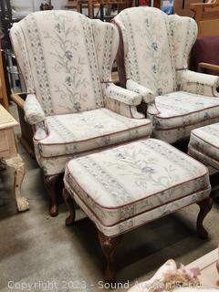 Lot #0011: J.C. Penney Floor Upholstered Wing Back Chair w/Ottoman