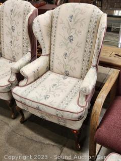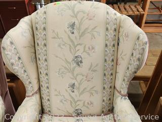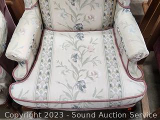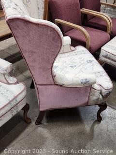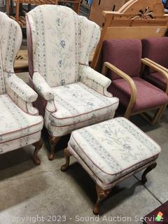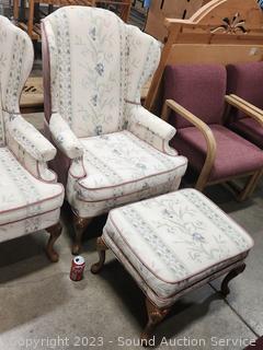 Lot #0012: J.C. Penney Floor Upholstered Wing Back Chair w/Ottoman