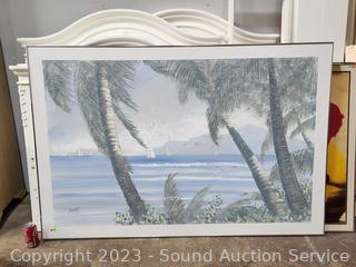Lot #0046: Large Original Signed Wishart Ocean View Oil Painting