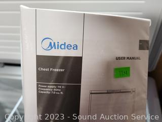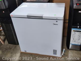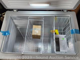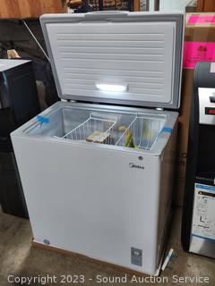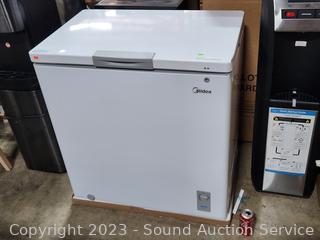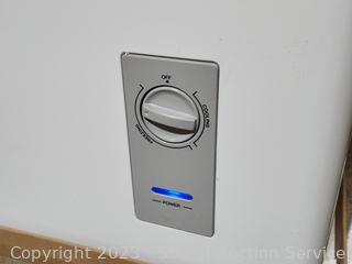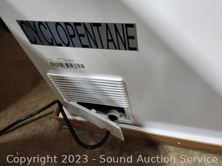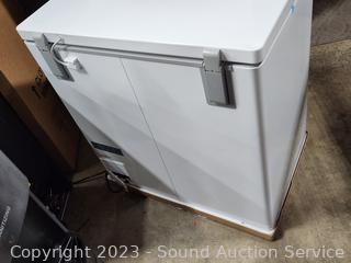 Like new condition, appears unused, does have a dent on top left facing corner of lid. Model MRC07M7AWW. Comes with manual. 33" H x 32" W x 21" D.