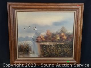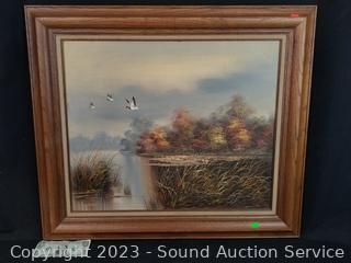 Lot #0059: Original D.Porter Signed Duck Oil on Canvas Painting