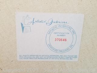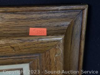 26.5" x 31.5". Nice oak frame, some scuffs.