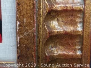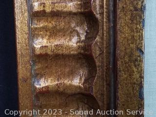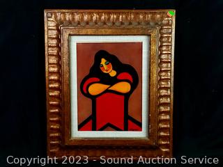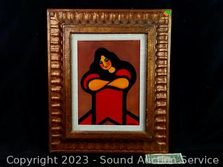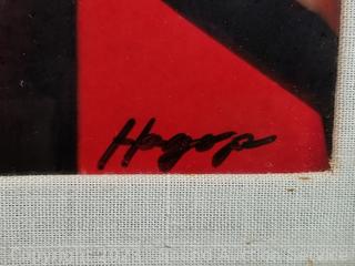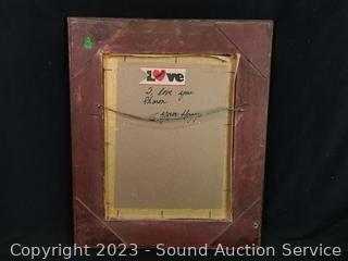 Signed by artist on the back with "I Love You Sharon, Hagop". Framed with glass. See some crazing in canvas. Unsure of original or print. 24" x 20" overall.