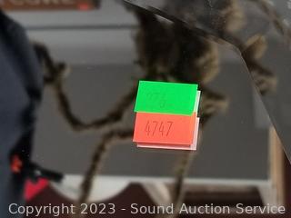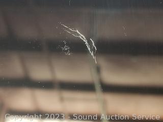 Rings for vertical or horizontal hang. 31.75" x 25.75". Has a scratch.