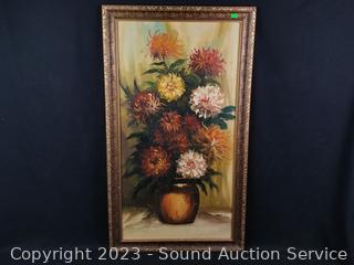 Refer to photos for signature. 33" x 19". Painted on canvas board.