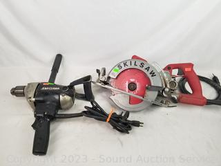 Lot #0100: Skilsaw 7-1/4" Circular Saw & Craftsman Industrial 1/2" Drill