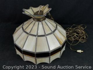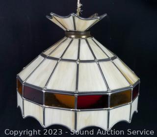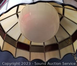 Lot #0143: Stand Glass Hanging Swag Lamp - Works