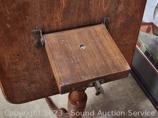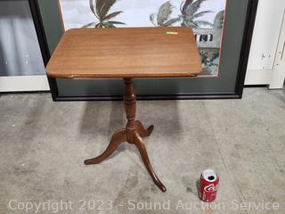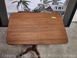 21.5" H x 18" x 12-5/8". Legs are little wobbly.