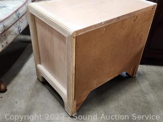 Lot #0003: Whitewash 2-Drawer Nightstand & King Headboard