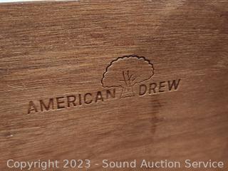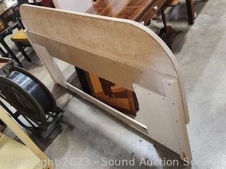Some wear to finish. Headboard 43" H x 79" W, nightstand 23" H x 25.5" W x 18" D.
