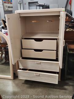 Lot #0001: Whitewash 4-Drawer Highboy Dresser