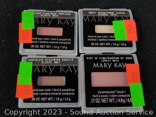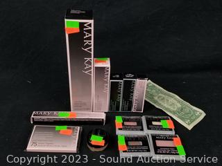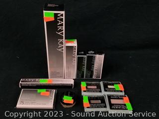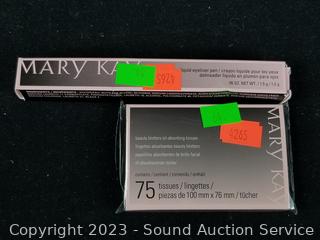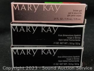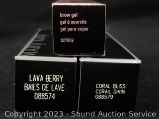 Liquid Eye Liner Pen, (2) True Dimensions Lipstick, Lash Intensifier Mascara, Brush Cleaner, 75pk Tissues, Brow Gel, Cream Eye Color, (4) Mineral Eye Color. All appear unused.