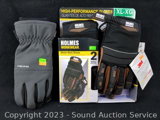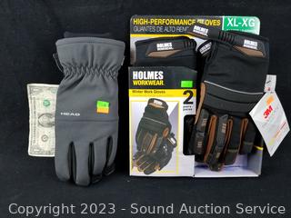 Lot #0266x: 2 Pairs Holmes Leather Winter Work Gloves & Head Touchscreen Gloves S:XL