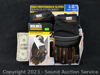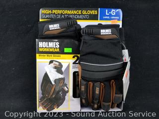 Lot #0158x: 2 Pairs Holmes Leather Winter Work Gloves S:L