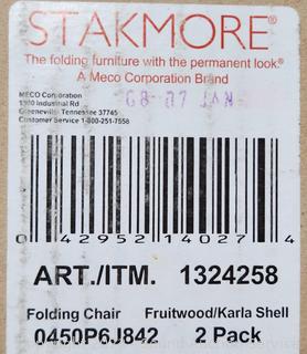 Lot #0307: 2 Stakmore Fruitwood Karla Shell Folding Chairs