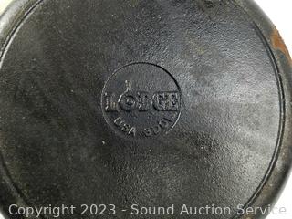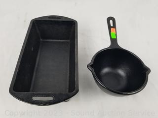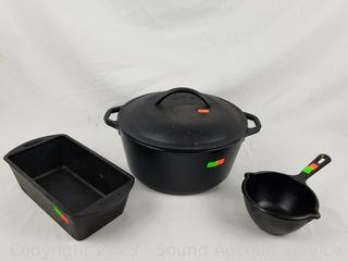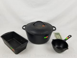 Lot #0124: 3pc Lodge Cast Iron Dutch Oven Loaf Pan & Ladle