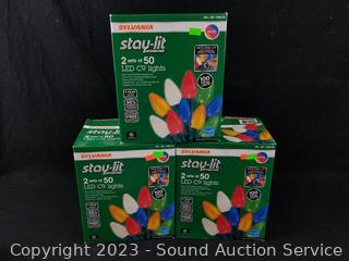 Lot #0314: 5 Strands Stay-Lit 50 LED Multi-Color C9 String Lights