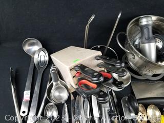 KitchenAid hand mixer, colander, knife block set, measuring cup, utensils & more. Refer to photos for more info.