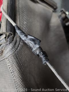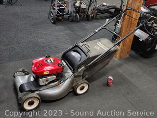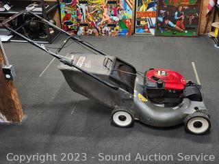Starts, runs, pull string is a little messed up. Comes with grass catch. Signs of wear form use.