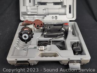Switch on side of unit is broken off, can still be used. Comes with case, some bits, abrasive pads.