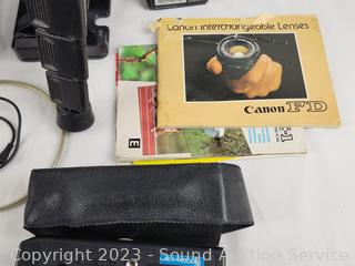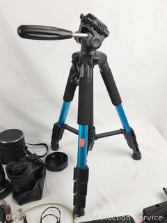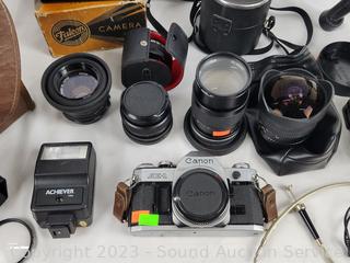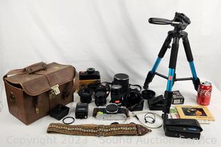 Lot #0132: Vtg. Canon AE-1 Film Camera w/Lenses & Tripod