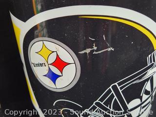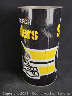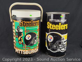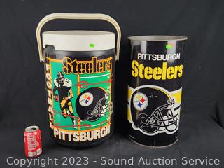 Lot #0218: Vtg. Pittsburgh Steelers Cooler & Tin Bin