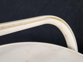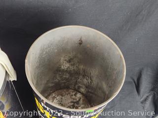 19" H x 10" Dia tin bin, 20" H x 12" Dia. cooler. Some scuffs, wear to finish.