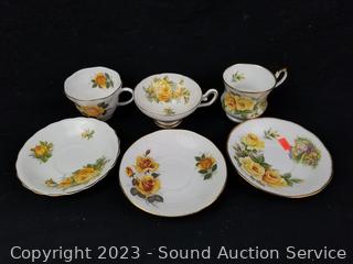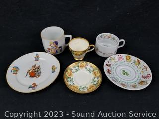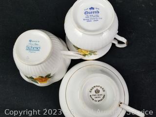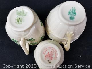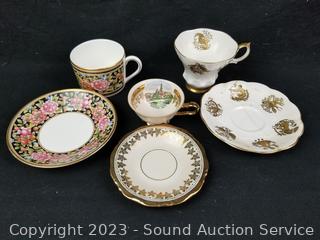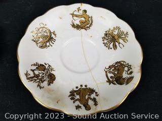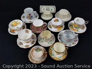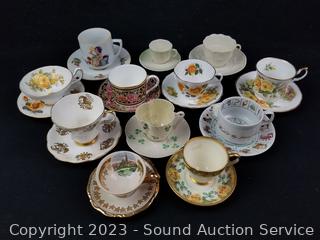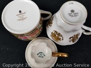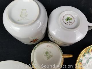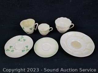 Bavaria, Salisbury England, Belleek Blarney, Belleek Clover, Wedgwood Clio, Royal Albert (saucer has been broken, repaired), Schmid Queen England, Crownford England, Queen's England, Belleek Shell, International Collectors Guild Zodiak.