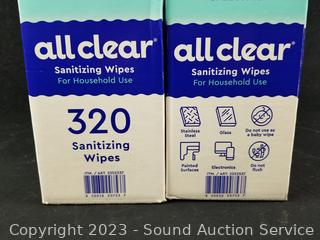 Lot #0225: (2) 320pk All Clear Household Sanitizing Wipes