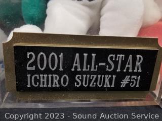 All in acrylic display's. (2) 2001 All-Star Ichiro Suzuki Seattle Mariners & Jan. 1st 2001 Rose Bowl WA Huskies. Don't see any issues.