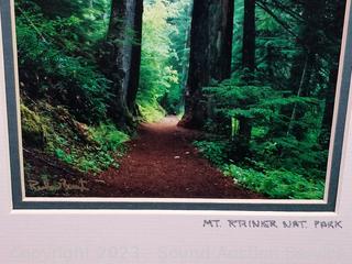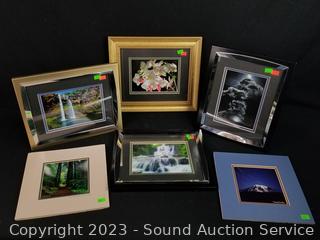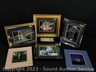 Maunt Rainer Nat. Forest, Moonlit Tree, 2 Waterfalls, Orchid. 4 by the same artist & Other 2 by same artist (Mt. Rainier Star Trails one has information on the back about the process of the photo from artist), unable to make out signature. 9" x 9" to 10.5" x 12.5".