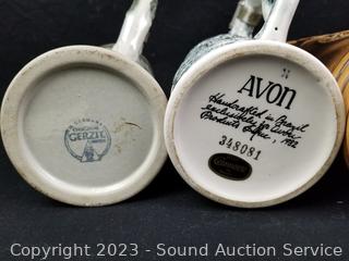 Belleek, Sadler England, Gerzit Germany, Avon Ceramarte Brazil, Gerz Germany & 2 unmarked look to be German. One has a broken lid hinge. 5.5" to 10.25" tall.