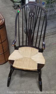 Lot #0039: Dark Staine Finish Rush Woven Seat Spindle Back Chair