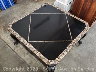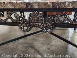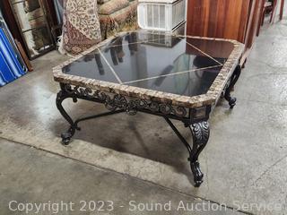 Lot #0074: Marquetry Stone/Tile Top Metal Base Table