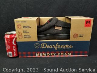 Lot #0221: Men's Dearfoams Black Wool Blend Memory Foam Slippers S:M,9-10