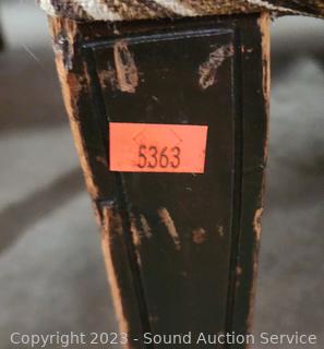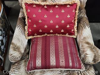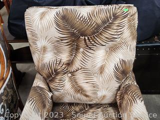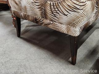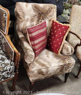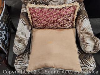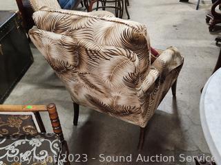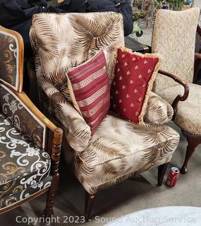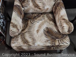 Lot #0021: Palm Leaf Fabric Upholstered Armchair w/Throw Pillow