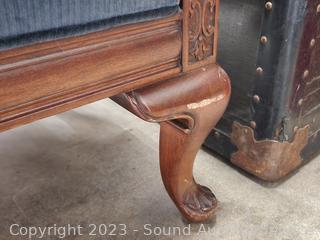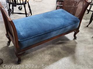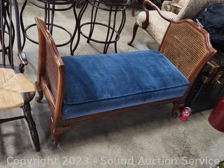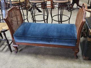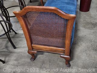 Lot #0038: Vtg. Cane Side Blue Upholstered Bench