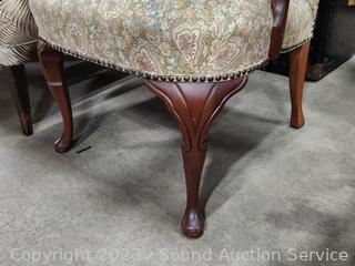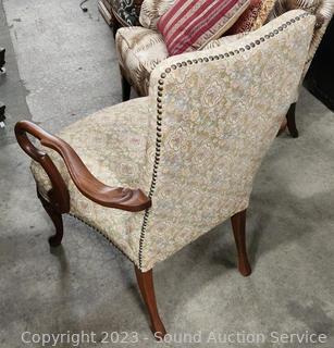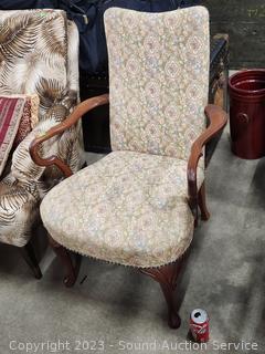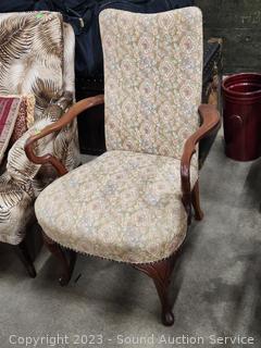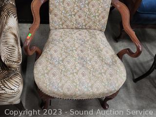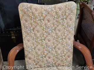 Lot #0020: Vtg. Oak? Floral Upholstered Armchair
