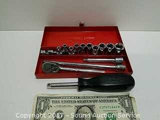 Sockets and extensions are Stanley. Ratchet, hand driver & case is Snap On. Comes with ratchet extensions and swivel adapter.