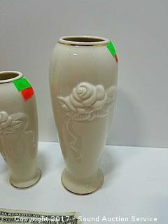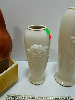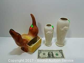 Lot #0049: 2 Lenox Porcelain Vases & Dachshund Planter
