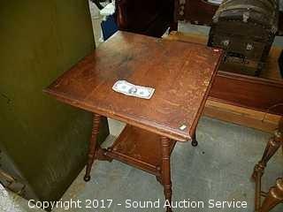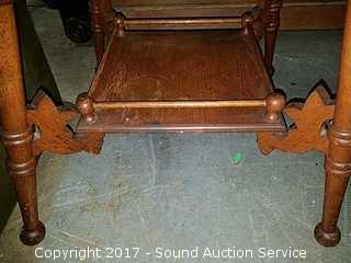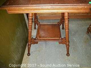 Lot #0033: Antique Two Tier Turned Leg Oak Side Table